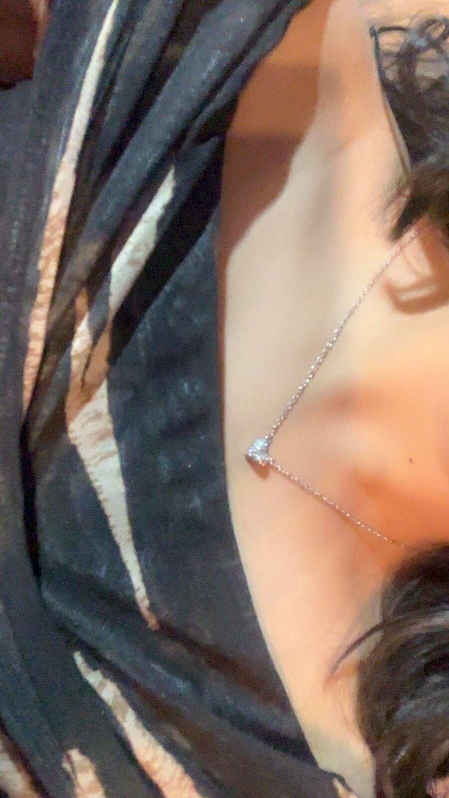 The necklace is a sleek silver chain with a tiny heart‑shaped pendant that rests delicately at the collarbone. It has a minimalist, elegant look with a subtle sparkle, making it suitable for everyday wear or dressing up. The design feels classic and romantic, adding a nice touch to any outfit.