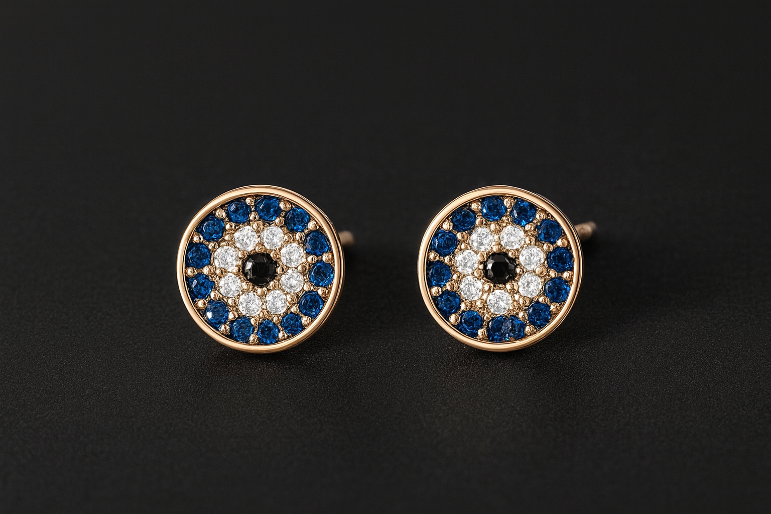 Evil eye motif with sapphire-blue and white crystals